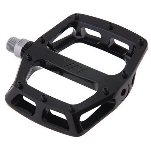 Over its 18 years of production the V12 has become recognized as the benchmark for flat pedal performance. For 2014 we took our iconic V12 body design and redefined it.Features: Larger Platform Area: The new V12 offers 10% more surface area than the classic shape. This means better grip and also support for rougher conditions and bigger hits. Lower Profile: At just 16mm deep the V12 is as slim as we could go whilst still retaining our legendary concave feel. Lighter Weight: There is a 20% weight saving from the last V12 with the standard version weighing under 430g per pair and the Magnesium at just 350g.Specifications: Body: Diecast Bearings: Sealed/DU bushings Axle: Cro-mo Pins: 10 Replaceable and tunable per side. Weight: 430g per pair