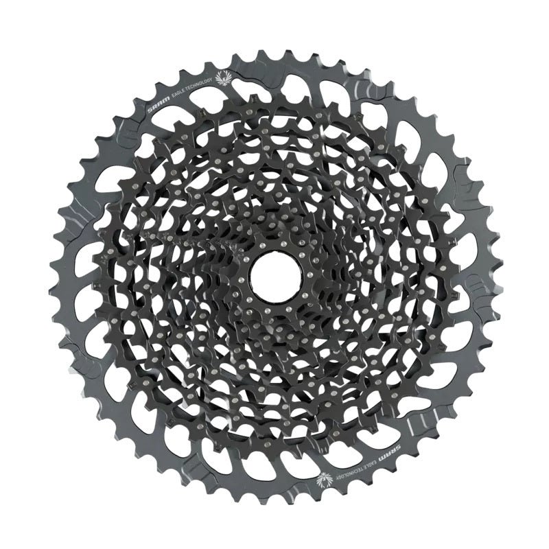 XG-1275 Eagle CassetteDESCRIPTIONThe new 10-52 Eagle cassette for riders who prioritize all day function over anything else. With an expanded, 520-percent gear range giving riders more ability to spin and recover on the burliest climbs. Featuring FULL PIN™ technology that uses lightweight, precision engineered steel cogs permanently connected with high-strength stainless steel pins. An open design similar to our X-DOME™ cassette that aids in mud clearance, giving riders crisp shifting performance and longer component life.FEATURES520-percent gear range utilizing the industry standard XD™ hub driver.Light and strong FULL PIN™ technology similar to X-DOME™ bringing true 1x gear range to more riders and builds.Lunar and black colorway makes the XG-1275 cassette right at home on any build.